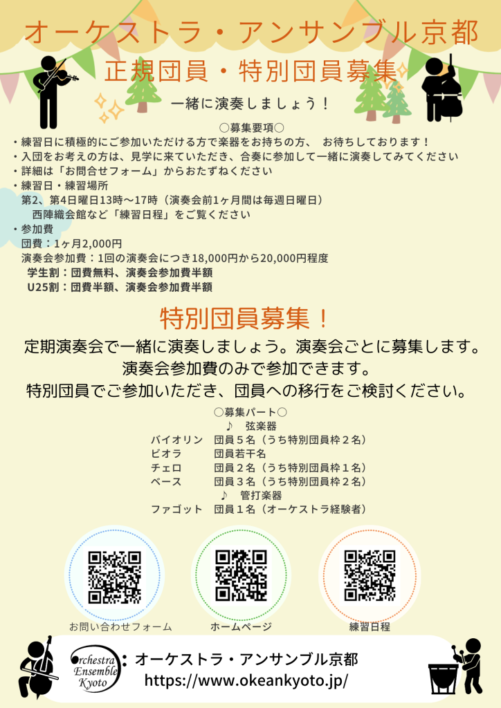 ・特別団員:定期演奏会で一緒に演奏しましょう。演奏会ごとに募集します。
